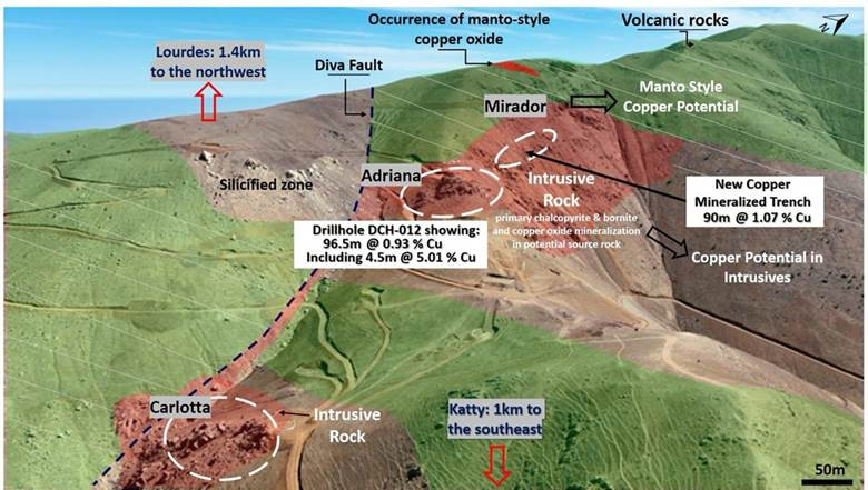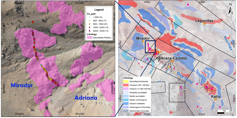Abbildung 1: Potenzielle Erweiterung der Kupfermineralisierung Adriana bei Mirador und Katty