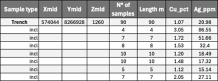 Neue Ergebnisse von Schlitzproben: 90 m mit 1,07 % Cu und 20,98 ppm Ag, einschließlich
