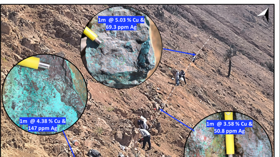 Bei jüngsten geologischen Kartierungen im Maßstab 1:2000 beim Ziel Mirador wurde eine neue Zone mit einer Kupfer- und Silbermineralisierung identifiziert, die aus Oxiden wie Malachit, Kieselkupfer und Atacamit sowie gemischten Verbindungen mit primären oder sekundären Sulfiden besteht, wobei das Vorkommen von Bornit hervorzuheben ist.