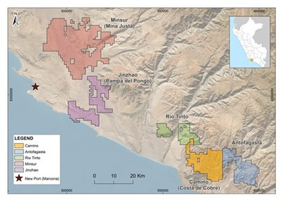 Das Gebiet, in dem sich Costa de Cobre befindet, beherbergt eine der weltweit neuesten groß angelegten Kupferminen, Mina Justa, und umfasst Kupferexplorationskonzessionen, die von großen Bergbauunternehmen wie Rio Tinto und Tochtergesellschaften von Antofagasta PLC gehalten werden, sowie bedeutende Eisenerzprojekte wie Pampa de Pongo und Marcona. Die Nähe zu in Betrieb befindlichen Minen und Explorationsprojekten dient lediglich der Veranschaulichung des regionalen Kontexts und ist nicht unbedingt ein Hinweis auf eine Mineralisierung im Projekt Costa de Cobre. Die Produktion in nahegelegenen Minen ist kein Hinweis darauf, dass das Unternehmen ähnliche Ergebnisse erzielen wird.