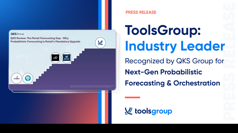"Nos sentimos honrados de ser reconocidos por QKS por cumplir la promesa de la previsión probabilística", dijo Kevin Young, CMO y EVP de Crecimiento en ToolsGroup. "Gestionar una cadena de suministro es difícil incluso en condiciones ideales, y la creciente complejidad y volatilidad no hacen más que complicarlo. ToolsGroup capacita a las organizaciones para controlar tanto la demanda como la oferta utilizando modelos probabilísticos e IA prescriptiva-entregando resultados con Certeza".